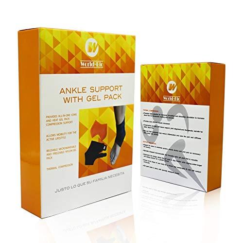 Ankle & Foot Ice Pack Wrap with Hot & Cold Gel Pack by WORLD-BIO, Adjustable Freeze Support Compression Therapy for Sprained Ankle, Plantar Fasciitis, Achilles Tendinitis, Sore Feet, Inflammation