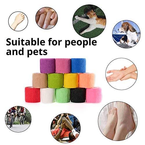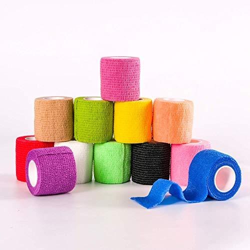 Fantastic Job 12 Pack 2 Inch Self Adherent Cohesive Tape Adhesive Nandage Wrap for Sports Ankle Wrist Finger