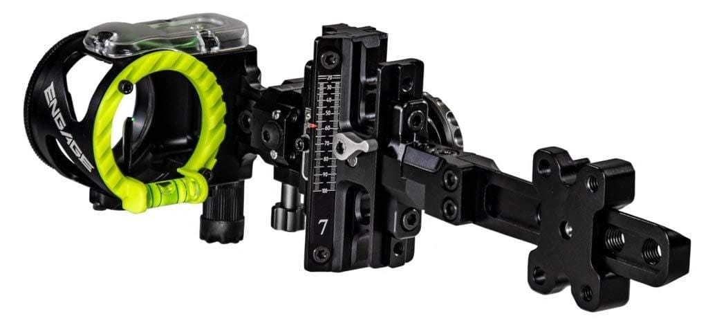 Details: The CBE Engage Hybrid Bow Sight features frustration-Free pin adjustments. Engage and move just one pin at a time. Loosen hex screw to engage the chosen pin. Turn the knob to make micro adjustments to individual pins. Armed Guard Fiber Management System protects the fibers every step of the way, from block to pin. And, there is now 12 inches of fiber for brighter pins! Quad Track – four-track stability adjustment system eliminates rocking and rattling. Our machined Rapid Drive elevation adjustment system is the fastest high-precision adjustment available – one turn = 1. 5" of travel. An ergonomic knob makes adjustments easy.