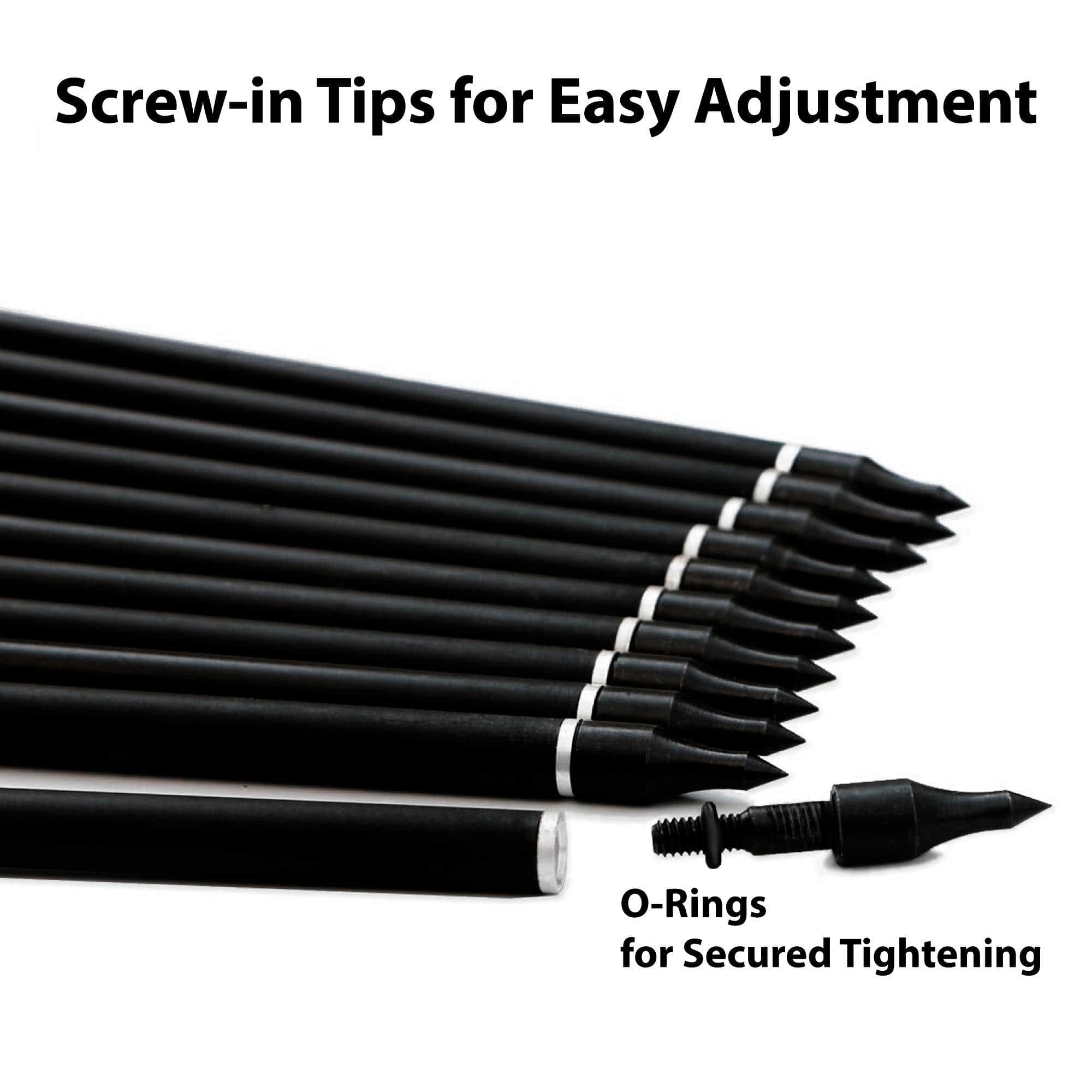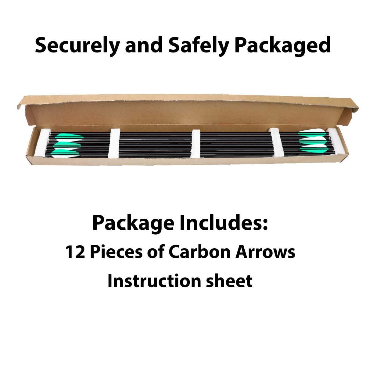 • COMPATIBILE: 100% Carbon Arrows for compound bows, Arrows for Recurve bow, traditional & Long bows. we recommend using these hunting arrows for Kids & Adults to use as Practice target shooting arrows or as Hunting Arrows, up to 60 pounds.