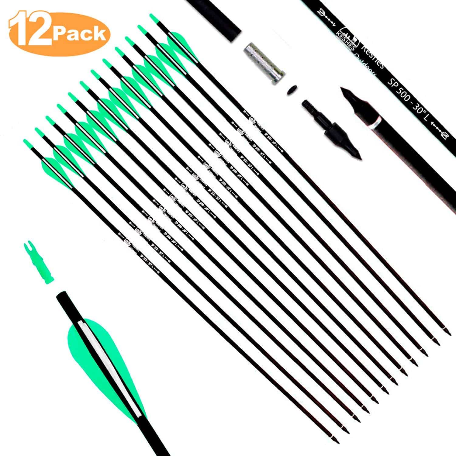 KESHES Archery Carbon Hunting Arrows for Compound & Recurve Bows - 30 inch Youth Kids and Adult Target Practice Bow Arrow - Removable Nock & Tips Points (12 Pack)