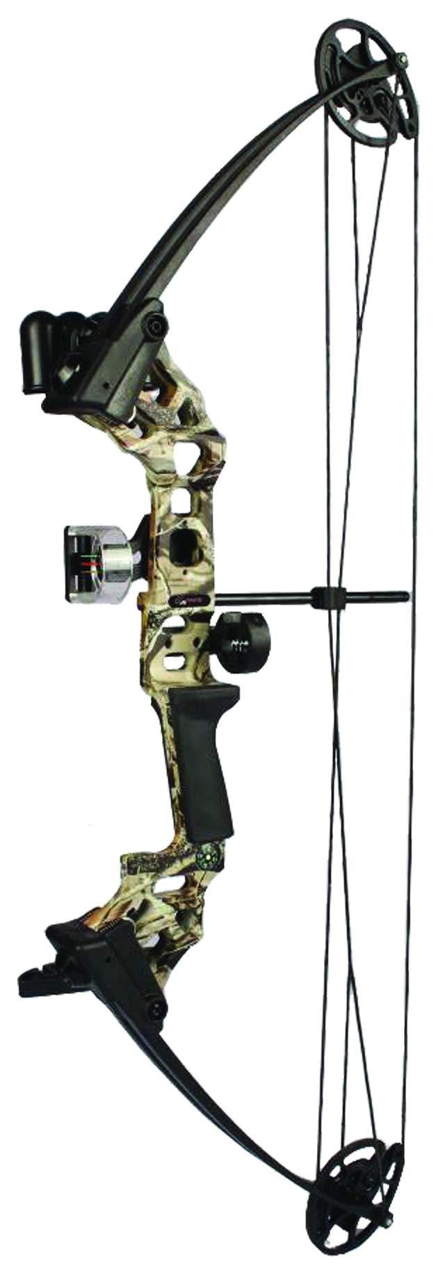 • Equipped with a camo riser, machined cams, a cable guide rod, cable slide, and fiberglass limbs