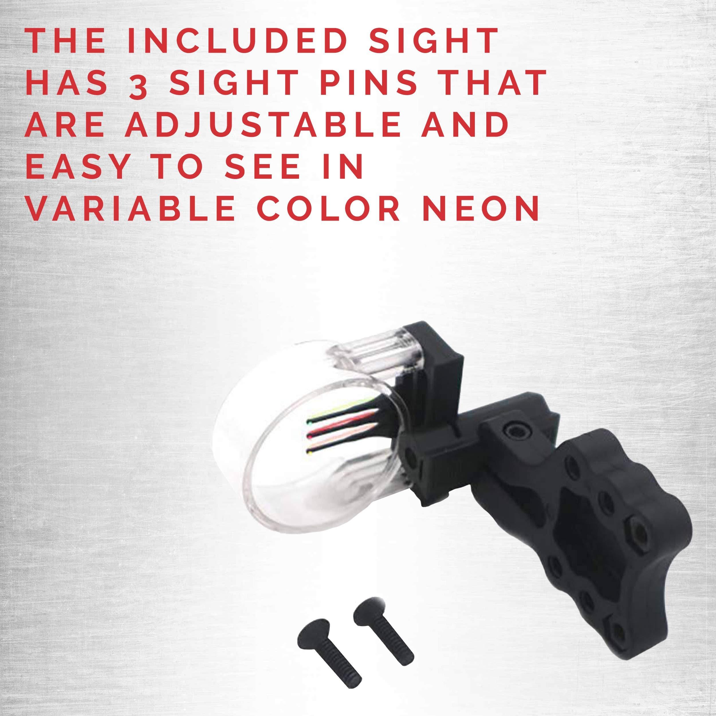 • Sights feature 3 adjustable pins in easy-to-see variable color neon; includes brush style arrow rest