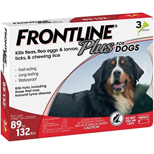 - WATERPROOF FLEA AND TICK TREATMENT FOR DOGS: Frontline Plus for Dogs provides waterproof, fast-acting, long-lasting flea and tick treatment and control for your dog. This product is approved for use on dogs 89-132 lbs.
