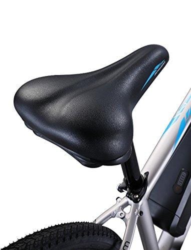 Details: If riding an eBike is a new adventure for you, then the Schwinn Sycamore is the perfect way to get started. The 700c Women's Sycamore sport hybrid electric bike has a 350-watt hub-drive motor with a thumbpad controller on the handlebar. With an LCD display showing battery life, assistance level, and basic cycling computer features, you can use the thumbpad to completely control your ride. There are five different levels of pedal-assist for you to choose from, which offer e-assistance up to 20 miles per hour. When you pedal, the motor activates and provides added assistance which you'll appreciate on daunting hills and long fitness rides. Depending on the level of assistance used, weight on the bike and path you take, the battery will last up to 45 miles and fully recharges (using a standard household outlet) in about six hours. Good luck beating the versatility of this sport hybrid e-bike. The Sycamore features a dual-sport aluminum frame with a comfortable upright riding position that's easy on your back. You'll enjoy durable, versatile riding thanks to the SR Suntour NEX suspension fork with hydraulic lockout to keep you in control of your ride. Eight traditional bike speeds with a Shimano Alivio rear derailleur and Shimano Altus trigger shifter keep shifting simple and smooth, while front and rear disc brakes give you the stopping power you need to ride confidently. This sleek electric bike bridges versatile hybrid riding with modern eBike convenience and is your ticket to speedy commutes, less sweaty hill rides and durable trail riding. The Sycamore is available in small and medium frame sizes and comes with a 2-year warranty on the battery and electric assist parts and a lifetime warranty on the frame and fork. Go electric with the Schwinn Sycamore! Available in M, S frame sizes, for longer reach and taller riders see Men's model for larger frame size range. (Women's medium is same dimension as Men's small)