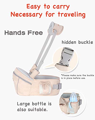 Baby Hip Seat Carrier Baby Waist Stool for Child Infant Toddler with Adjustable Strap Buckle Pocket Soft Inner Huge Storage (Pink)