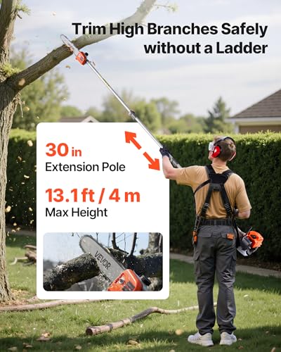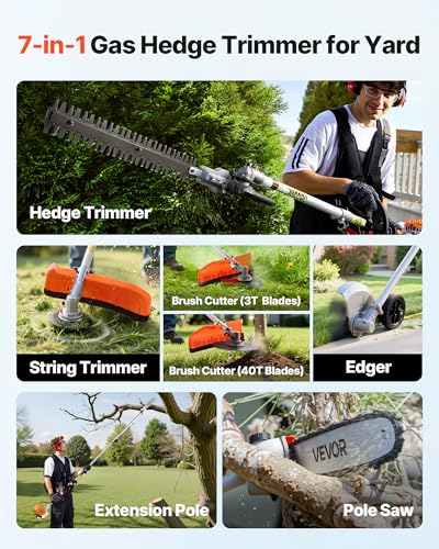 VEVOR 26cc Gas-Powered 7-in-1 Multi-Functional Trimmer - Gas Hedge Trimmer, Brush Cutter (3T/40T), Weed Eater/String, Edger, Pole Saw & 12" Chainsaw Pruner with Extension Pole, EPA, CE & EMC Certified