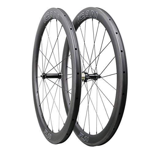 ICAN FL50 Carbon Road Bicycle Wheelset Clincher Tubeless Ready Rim Novatec AS511SB/FS522SB Hub Sapim CX Ray Spokes Only 1470g (Fast & Light Series)