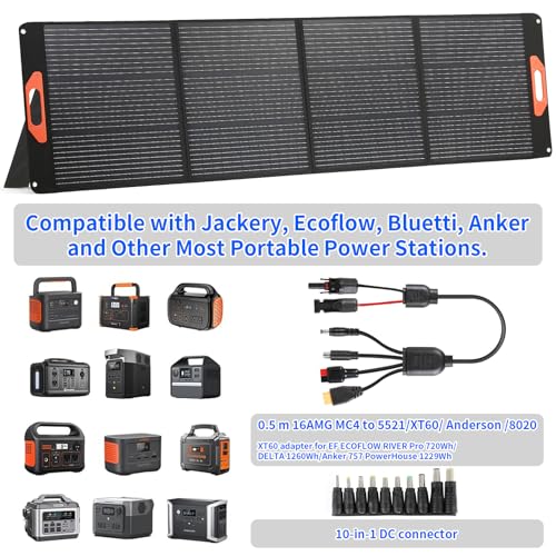 200W Portable Solar Panel for Power Station, Compatible with Jackery, Ecoflow, Bluetti, Anker and More Portable Power Stations, 23.5% High Efficiency, Weatherproof for Camping, RV, Emergency Power