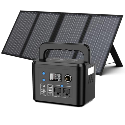 350W Portable Solar Generator with 60W Solar Panel, Powkey 70,000mAh Backup Lithium Battery, 110V/350W Pure Sine Wave AC Outlet, Power Station with Solar Panel for Outdoors Camping Travel Hunting