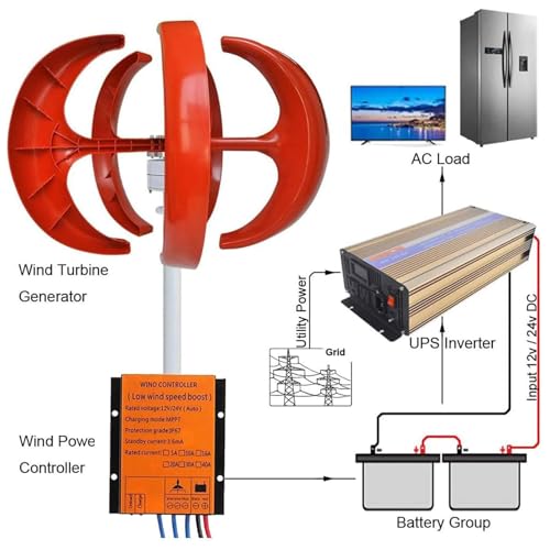 5000W Wind Turbine Generator Kit - 12V/24V/48V Vertical 5-Blade DC Generator for Home, Chalet, Hybrid Solar & Wind Energy Solutions - Efficient Power Generation