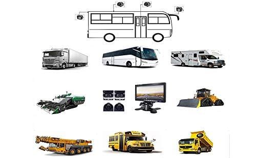 Podofo 9V-24V Car Backup Camera Kit, 7 Inch HD Quad Split Monitor + 4 x Waterproof IR Night Vision Front Rear Side View Cameras and 33ft AV Cables, Mirror/Normal Image