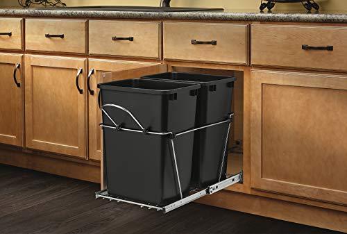 Rev-A-Shelf - RV-18KD-18C S - Double 35 Qt. Pull-Out Black and Chrome Waste Container