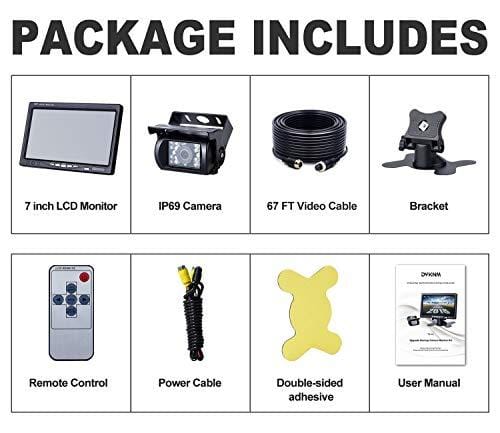 Upgrade Backup Camera Monitor Kit,1024X600 HD,IP69 Waterproof Rearview Reversing Rear View Camera 7'' LCD Reversing Monitor Truck/Semi-Trailer/Box Truck/RV - HD Transmission, Four-pin - DVKNM (TZ101)