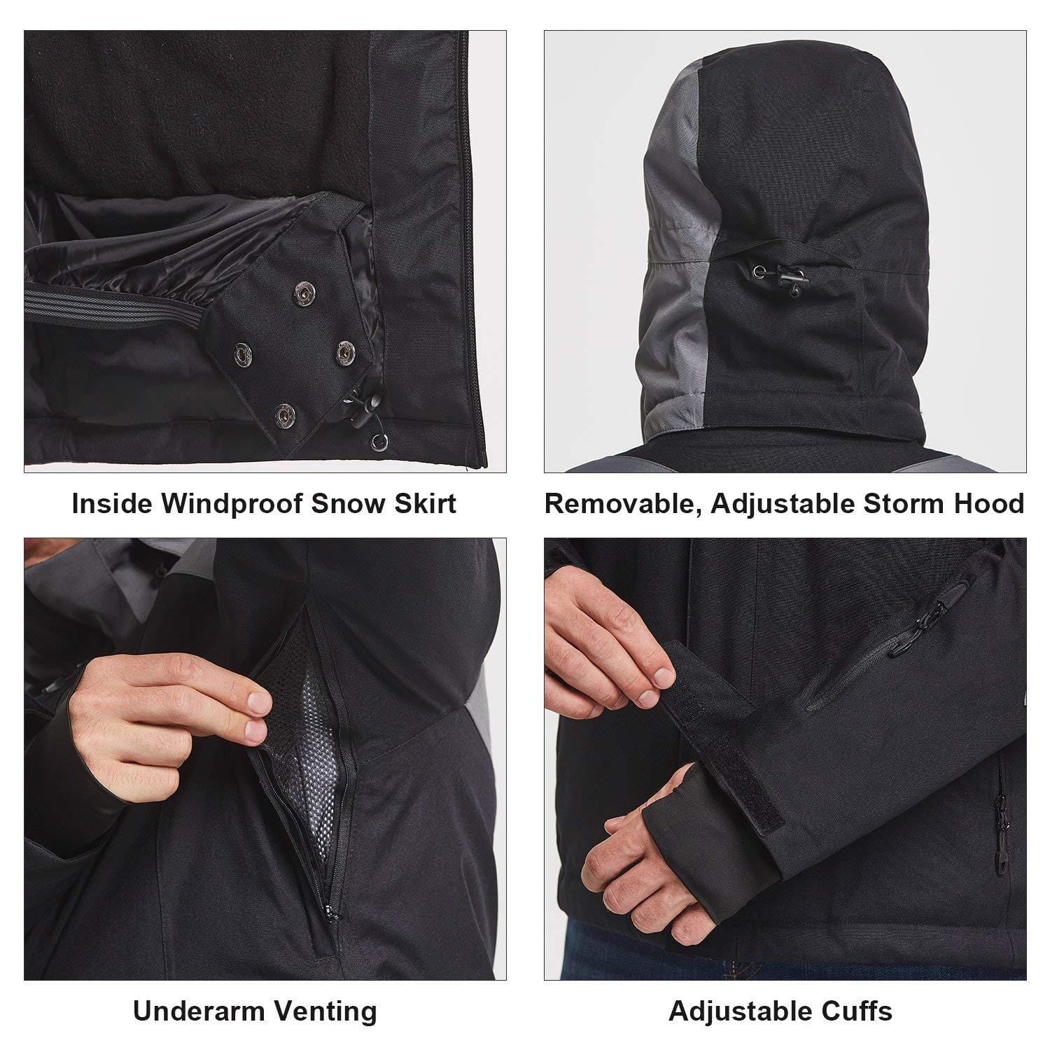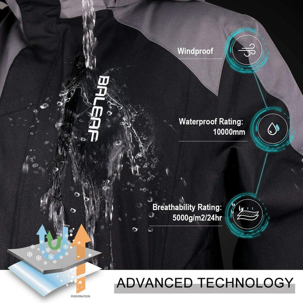BALEAF Men's Waterproof Ski Jacket Mountain Windproof Winter Snow Coat Rain Jacket Black/Gray M