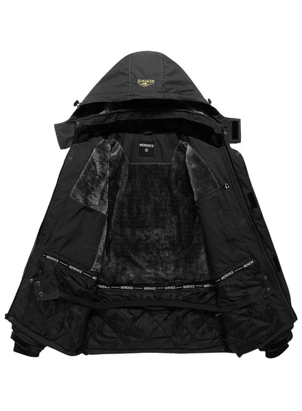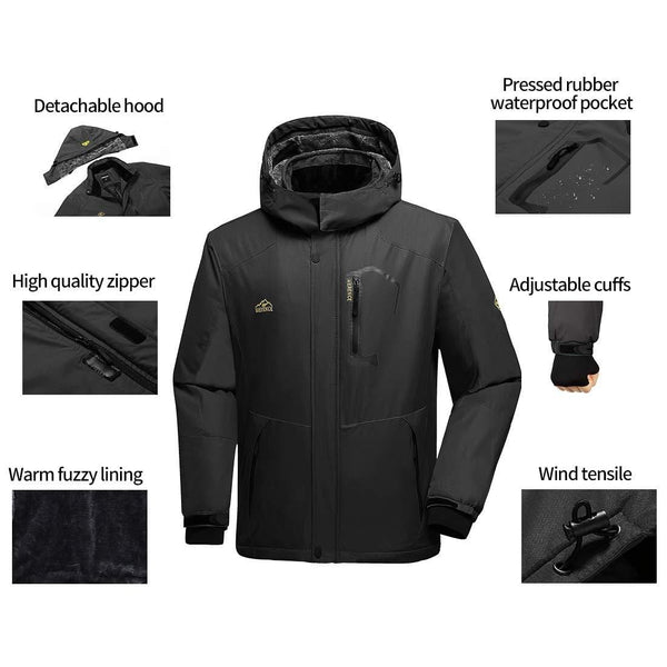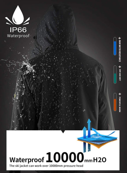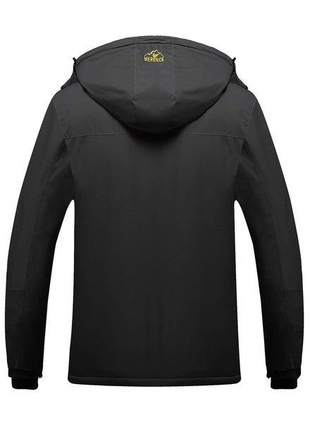 Men's Mountain Waterproof Ski Jacket Windproof Rain Jacket U619WCFY028,Black,L