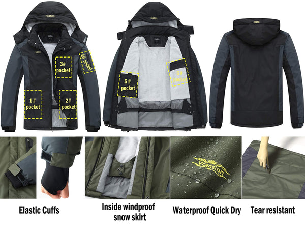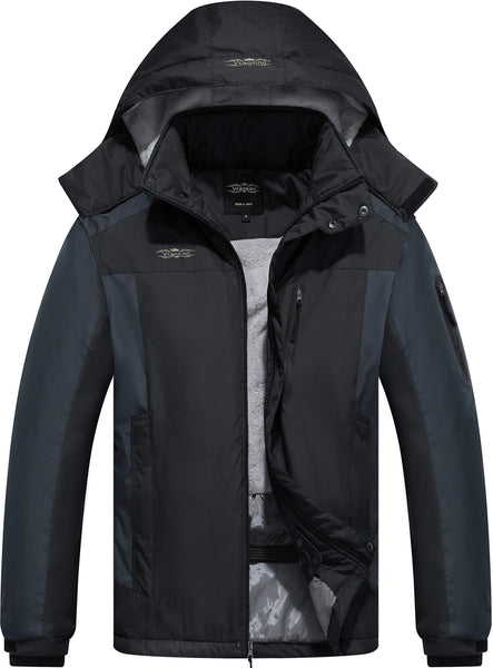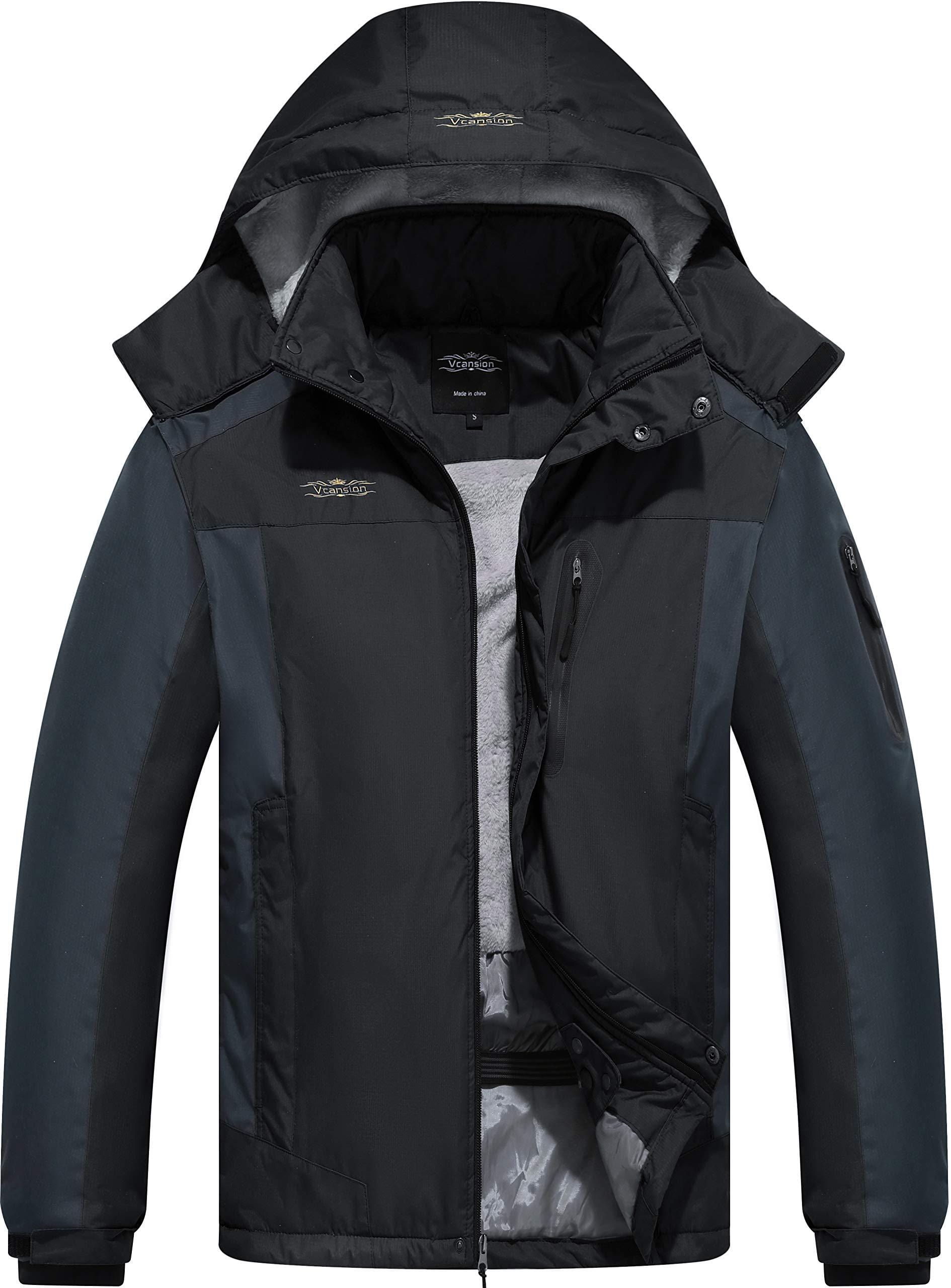 Vcansion Men's Waterproof Mountain Jacket Fleece Outerwear Windproof Ski Jacket Snow Jacket Raincoat Black L