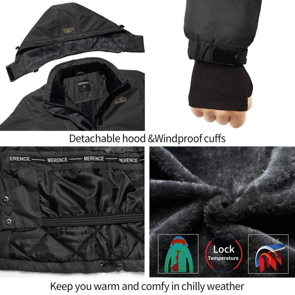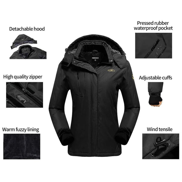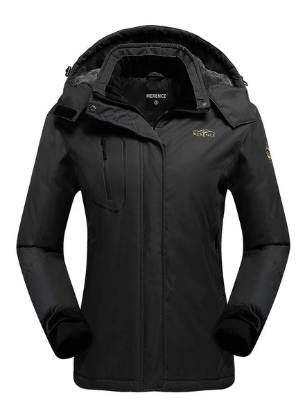 Women's Mountain Waterproof Ski Jacket Windproof Rain Jacket U419WCFY029,Black,L