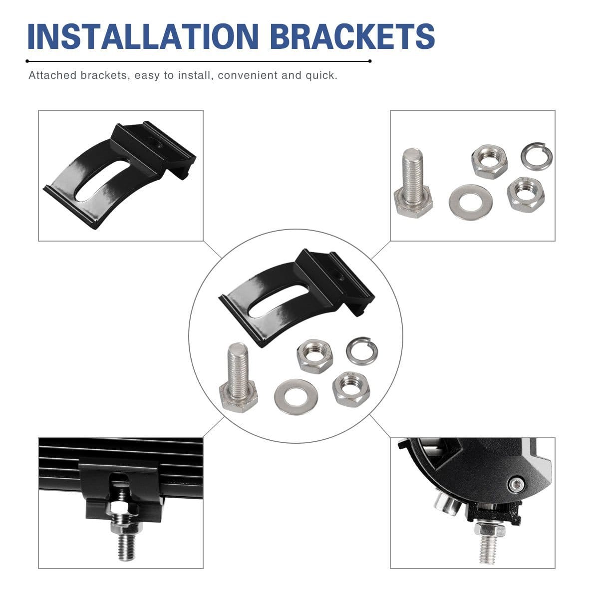• Adjustable Mounting Accessories: With adjustable mounting accessories, the work light can adjust to about 90 degrees, which makes changing direction of light beam easier. The lamp can be slid after install the accessory.