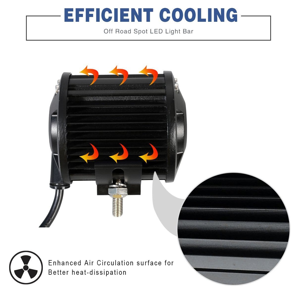 • Better Heat Dissipation: In order to get best heat dissipation, our led light pods takes 1070 aluminum which can performance best heat dissipation and best seal ability alloy as the heat sink and casing. The aluminum fan sharp design, makes it dissipate heat more faster and effective. Extend lifespan of the light bar beyond 50,000 hours.