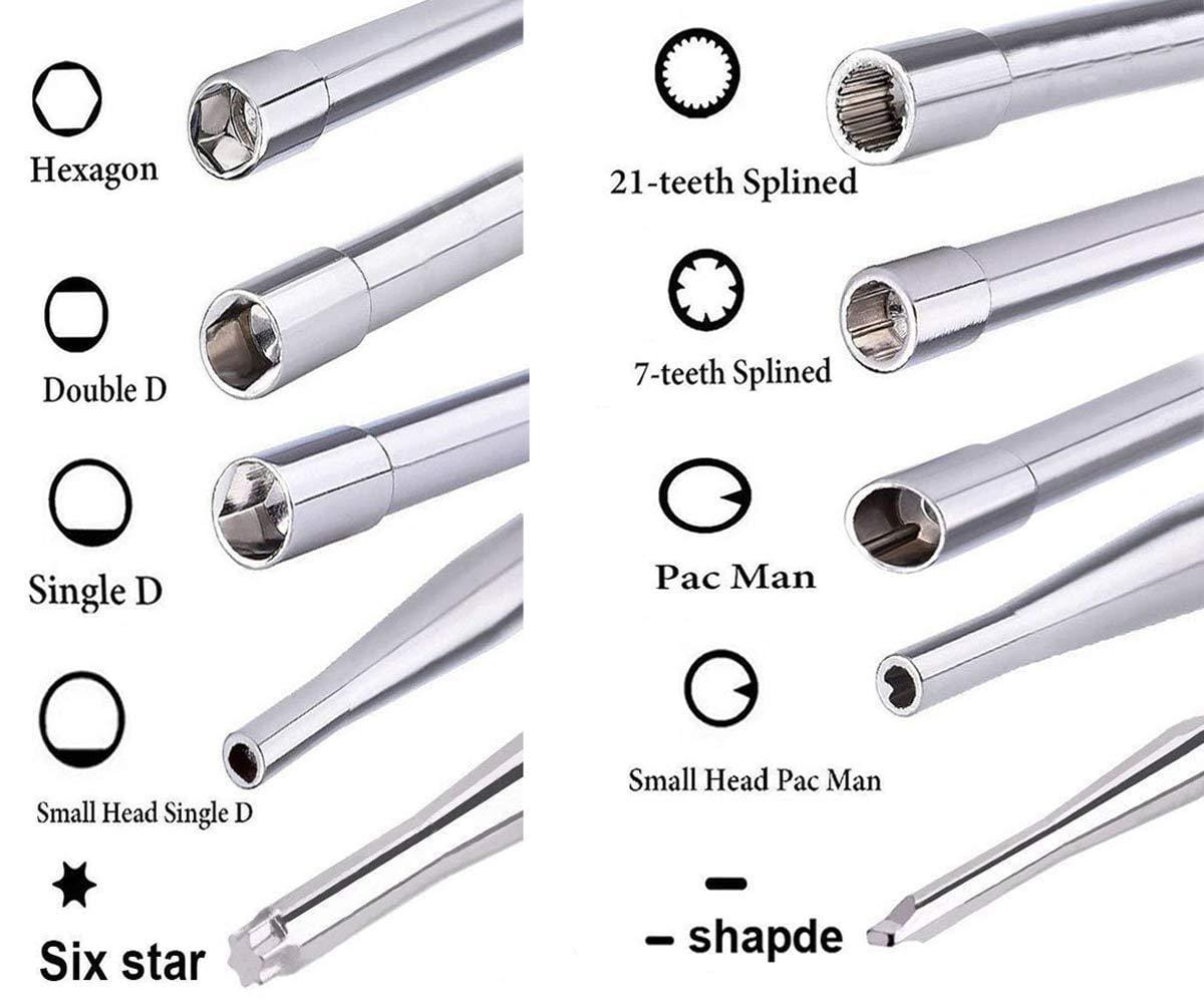 • This 10pcs Carburetor Adjustment Tool Kit comes with 21 Teeth Splined + 7 Teeth Splined + Single D + Small Head Single D + Double D + Pac Man + Small Head Pac Man + Hexagon + Shapde + Six Star+3 Fuel Line Hose.The most complete carburetor tool set, all tools included to adjust common 2 cycle carburetor engine.