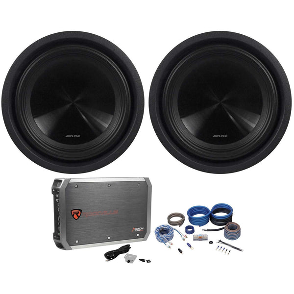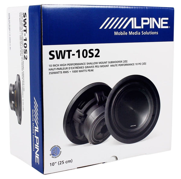 2) Alpine SWT-10S2 10-Inch 2000W Shallow Subwoofers+3000W Mono Amplifier+Amp Kit