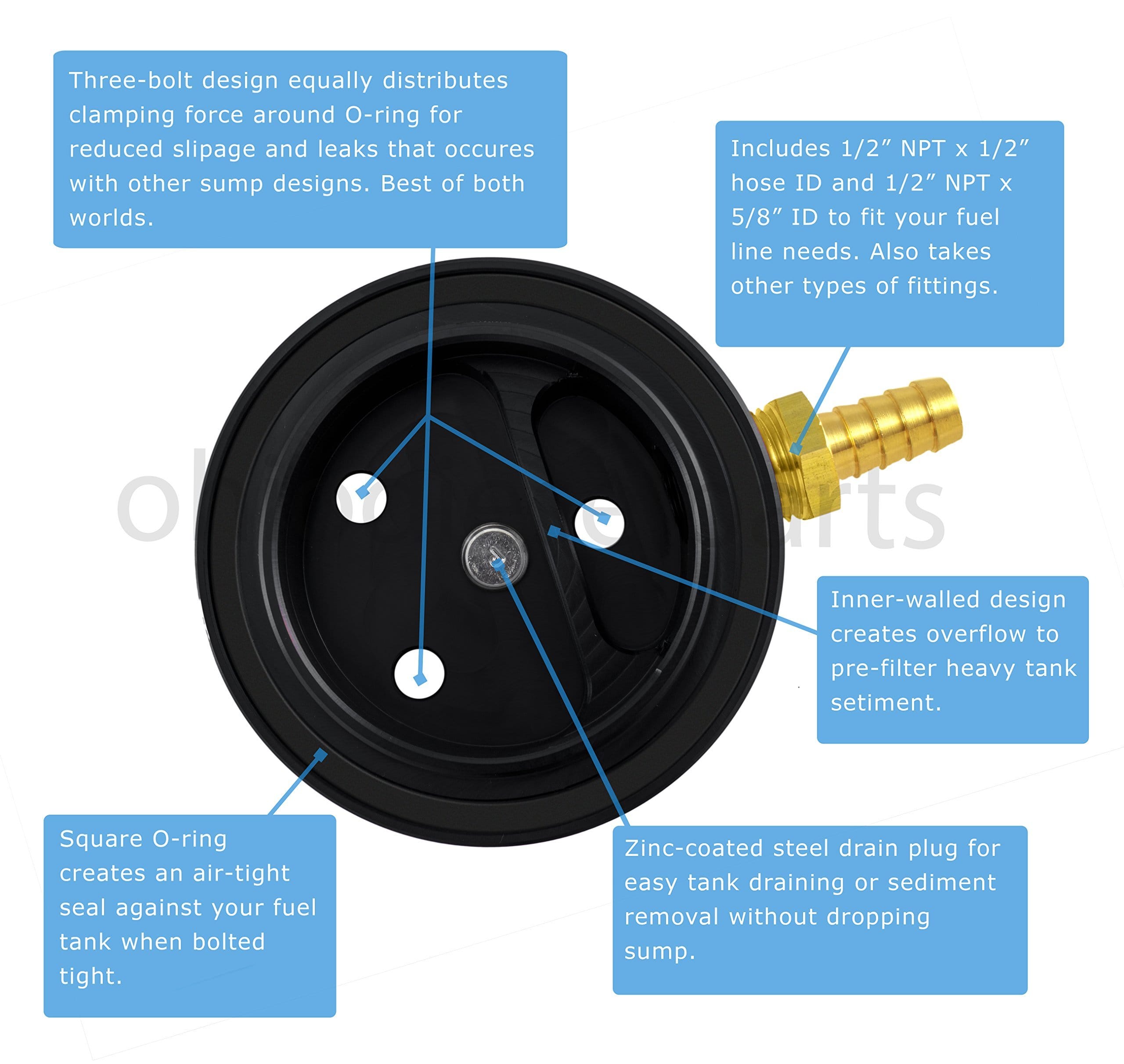 Ohio Diesel Parts Fuel Tank Sump Kit for Diesel or Gasoline Fuel Tanks with 1/2" and 5/8" Barb Sizes (Black)