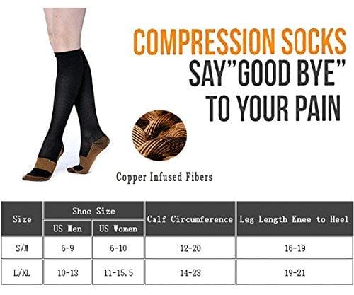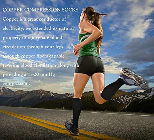 - ✅COPPER COMPRESSION SOCKS - Copper is a great conductor of electricity, we extended its natural property to rejuvenate blood circulation in your legs through copper fibers capable reviving blood circulation along with providing a 15-20 mmHg compression. They keep your feet and legs fresh throughout the day by providing a mild squeezing action to support enhanced blood flow. It offers the most perfect settlement scheme for those who sit for long period during travel or at work.