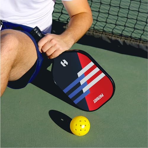 • 【Balanced Paddle, Premium Construction】 Each Patriot pickleball paddle is made with a fiberglass face which generates more control and power in each swing. The polypropylene honeycomb core makes the paddle light. Strike the optimal balance of power and control with the dynamic Patriot pickleball paddle.