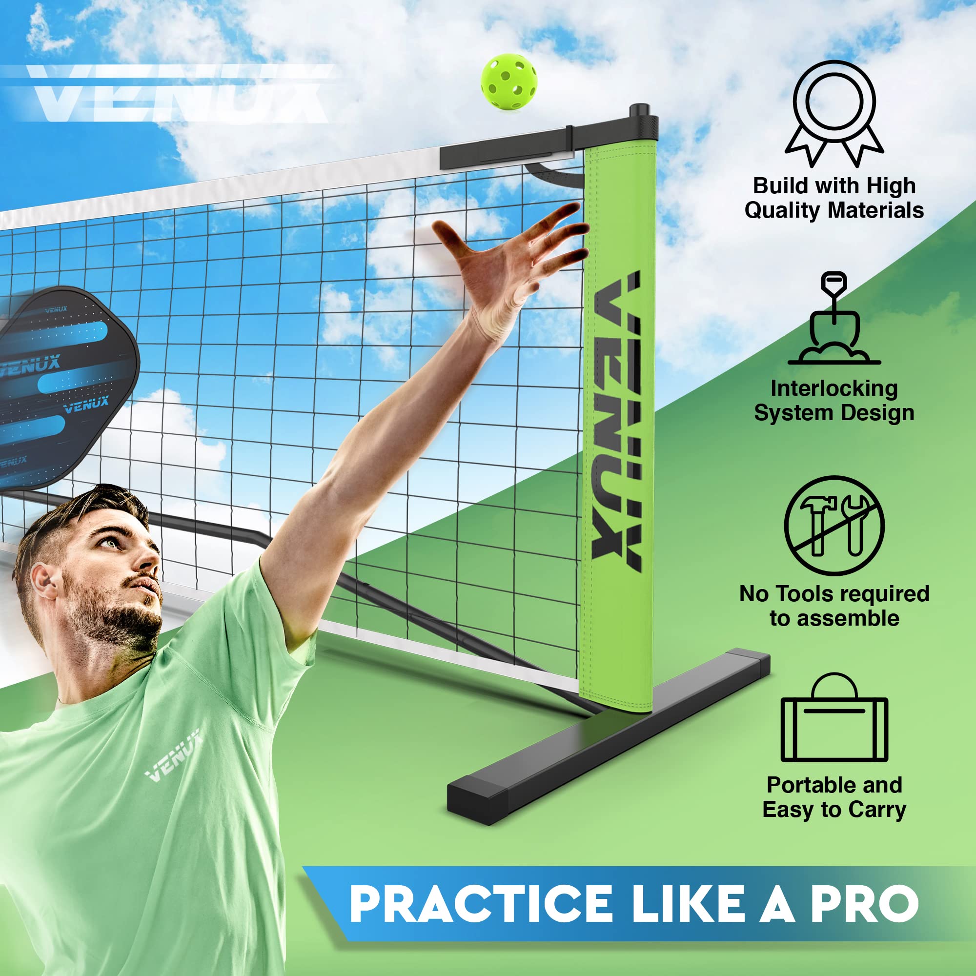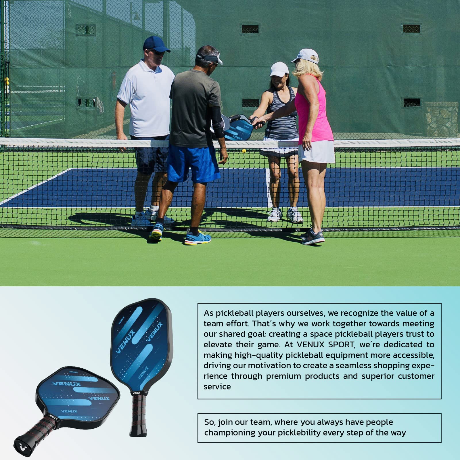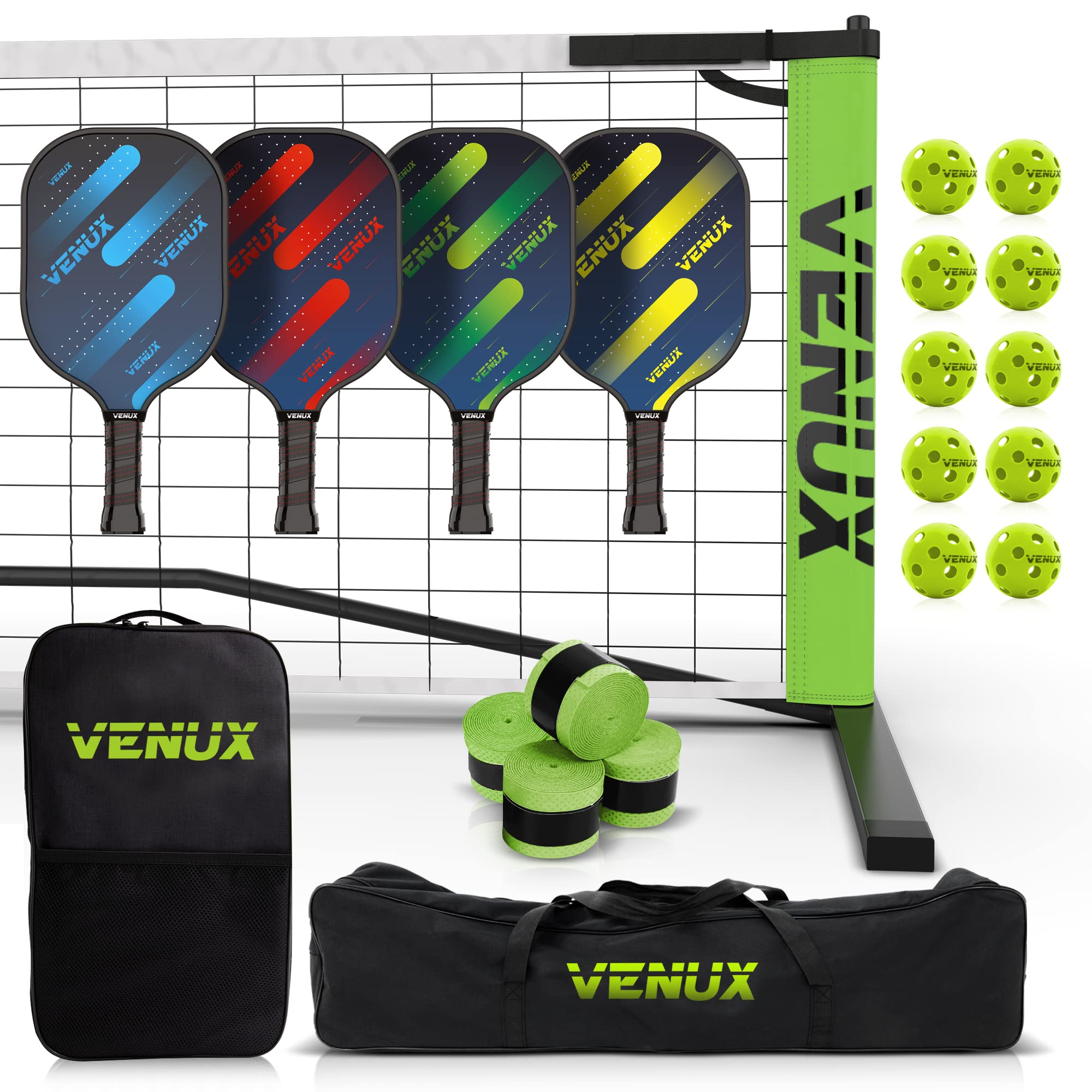 VENUX Portable Pickleball Set with Net - Professional Pickleball Set of 4 Paddles Fiver-Glass Carbon Graphite Surface 10 Balls, 4 Grips, 1 Net, 1 Carrying & 1 Paddle Bag, PVC Official Regulation Size