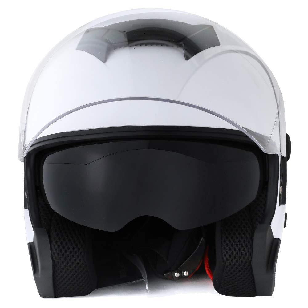1STORM MOTORCYCLE OPEN FACE HELMET SCOOTER CLASSICAL KNIGHT BIKE DUAL LENS/SUN VISOR GLOSSY White