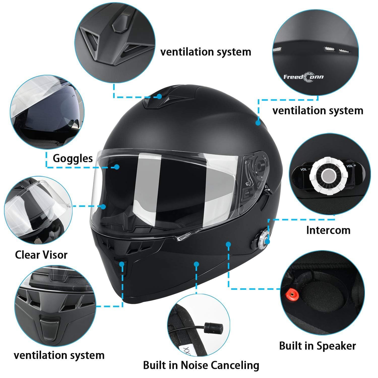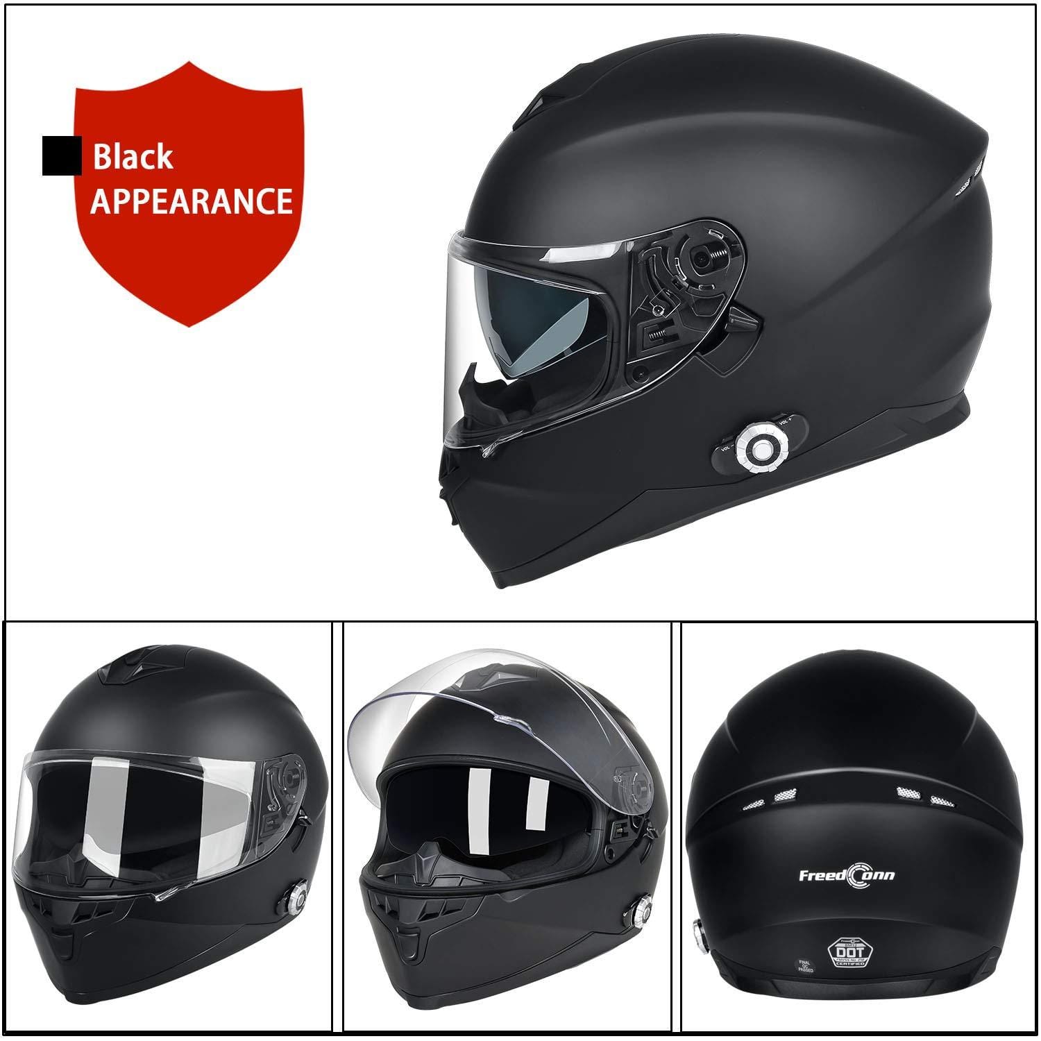 Bluetooth Integrated Motorcycle Helmet, FreedConn DOT Full Face BM12 Communication System Motorcycle Helmet with 500m FM radio/ MP3, 2-3 Riders Pairing Intercom (Matte Black, XL)