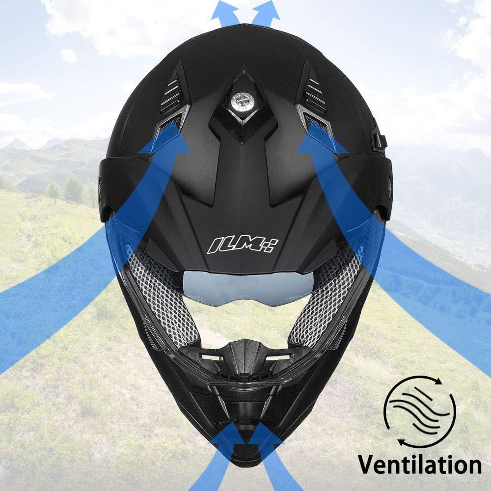 ILM Off Road Motorcycle Dual Sport Helmet Full Face Sun Visor Dirt Bike ATV Motocross DOT Approved (XXL, Matte Black)