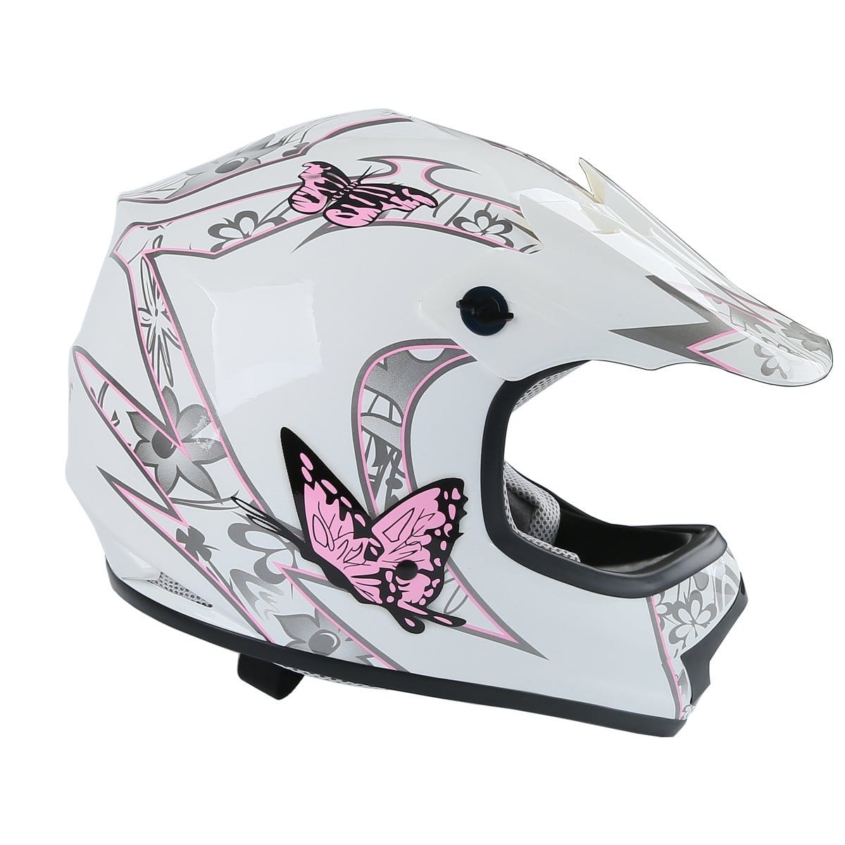 TCT-MT DOT Helmet+Goggles +Gloves Youth Kids Helmet Pink Butterfly Dirt Bike Motocross Offroad Street Helmet Motorcycle (Large)