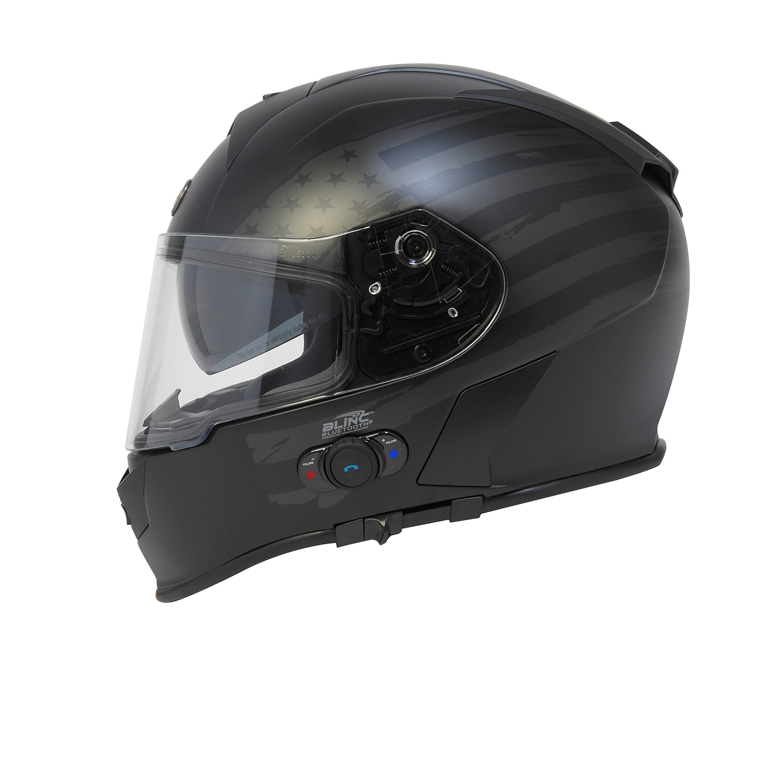 Torc T14B Bluetooth Integrated Mako Full Face Helmet with Flag Graphic (Flat Black, Large)