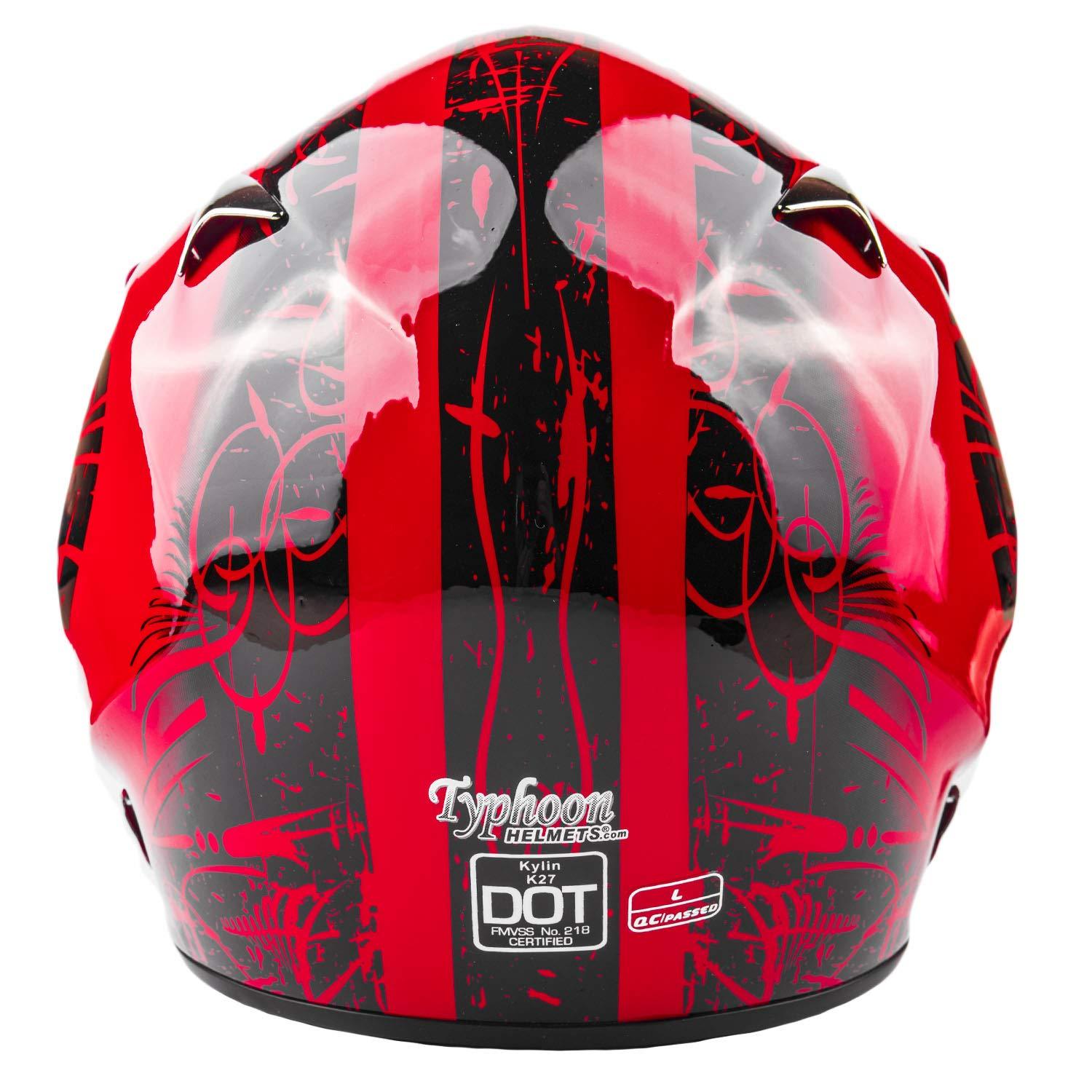 Typhoon Adult ATV MX Helmet Goggles Gloves Gear Combo Red with Red (XL)