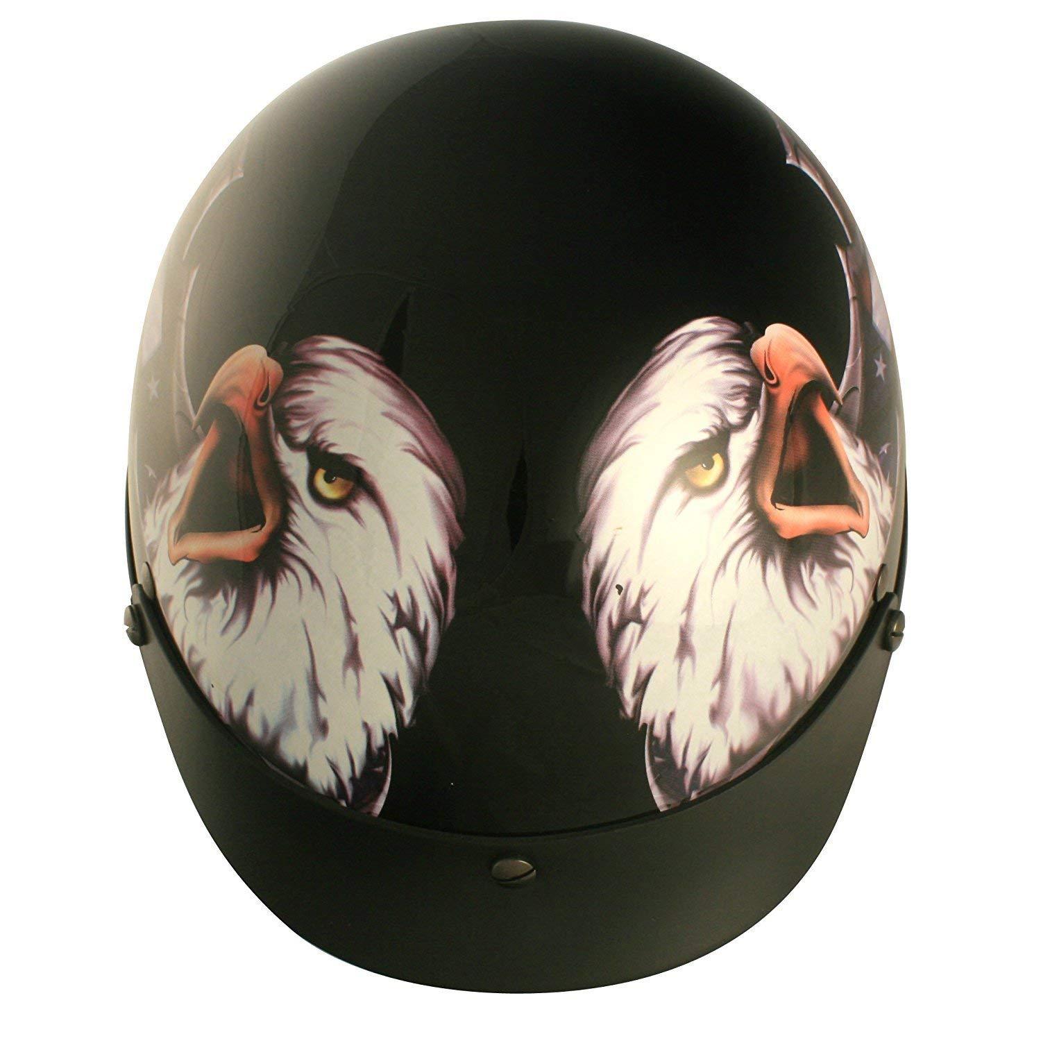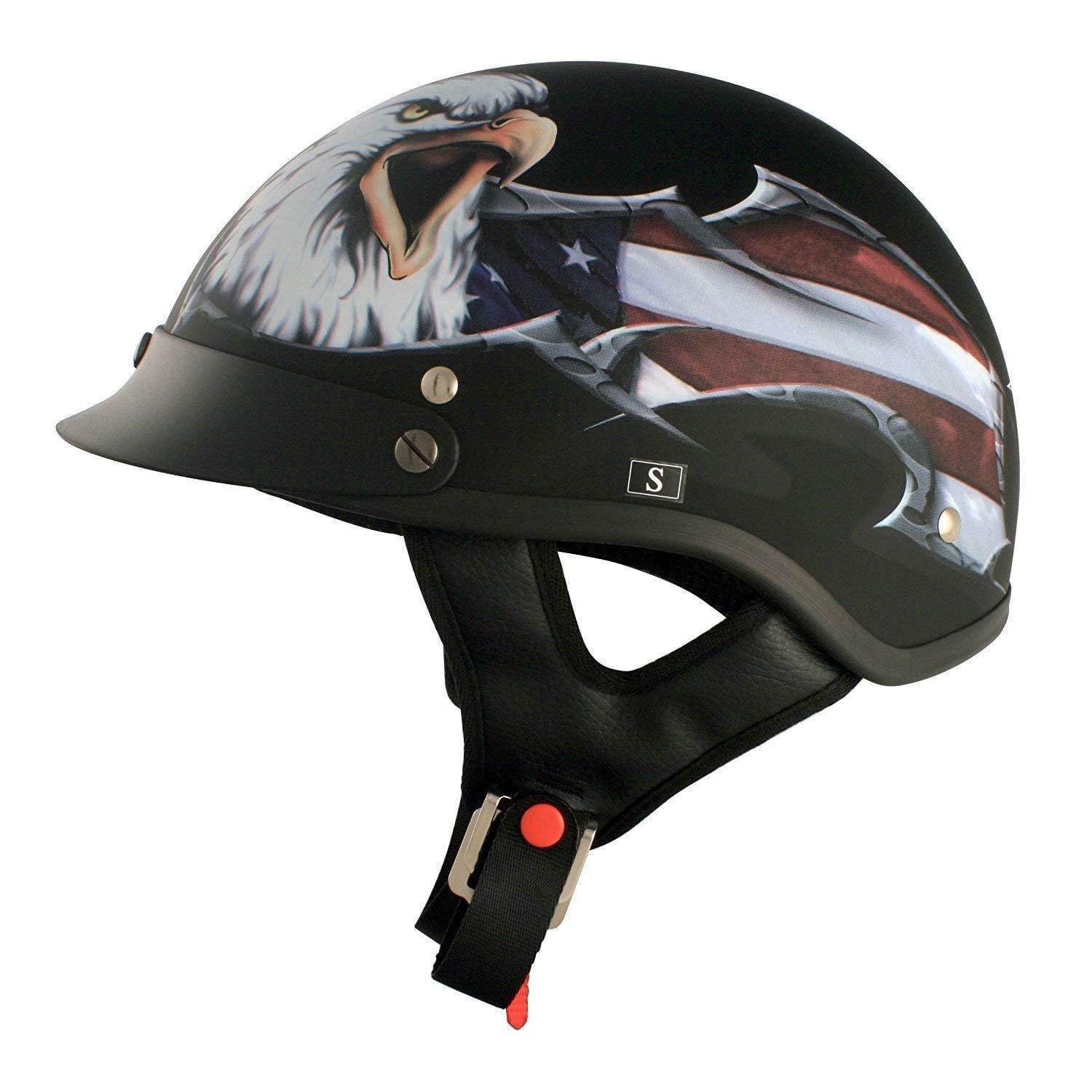 VCAN Cruiser Patriotic Eagle USA Graphics Motorcycle Half Helmet (Flat Black, Large)