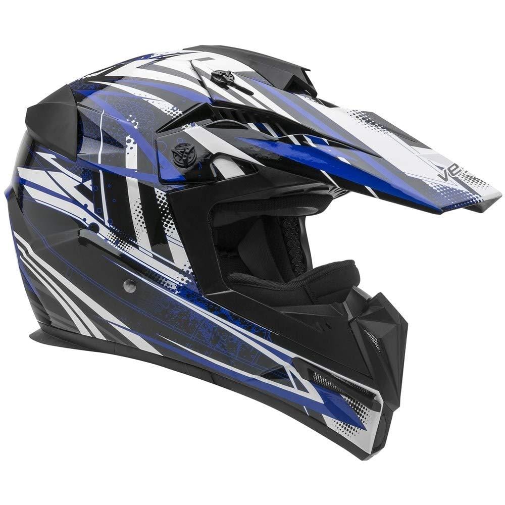 Vega Helmets Unisex-Child Kids Youth Dirt Bike, Motocross Full Face Helmet for Off-Road ATV MX Enduro Quad Sport (Blue Tactic Graphic, LARGE)