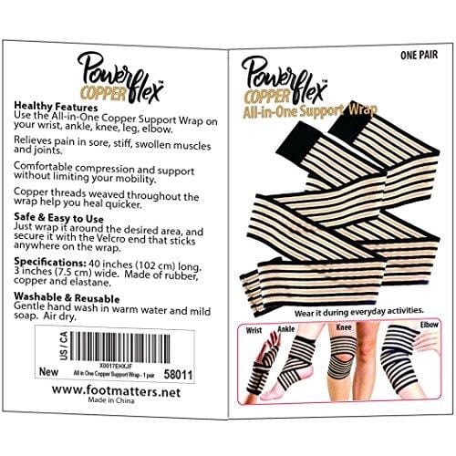 Details: Soothe sore, stiff or swollen muscles and joints with this All-in One Copper Support Wrap. Use it to help relieve pain in your wrist, ankle, knee or elbow. The comfortable wrap provides the needed compression and support without limiting mobility. The copper thread throughout the wrap is said to help promote healing and reduce recovery time. Simply wrap it around the desired area and hold it in place with the Velcro, found on the end, which sticks anywhere on the wrap. 3 W in X 41 3/4 in Long. Made of rubber, copper and elastane. Machine wash. Imported. Soothe sore, stiff or swollen muscles and joints with this All-in One Copper Support Wrap. Use it to help relieve pain in your wrist, ankle, knee or elbow. The comfortable wrap provides the needed compression and support without limiting mobility. The copper thread throughout the wrap is said to help promote healing and reduce recovery time. Simply wrap it around the desired area and hold it in place with the Velcro, found on the end, which sticks anywhere on the wrap. 3 W in X 41 3/4 in Long. Made of rubber, copper and elastane. Machine wash. Imported. Soothe sore, stiff or swollen muscles and joints with this All-in One Copper Support Wrap. Use it to help relieve pain in your wrist, ankle, knee or elbow. The comfortable wrap provides the needed compression and support without limiting mobility. The copper thread throughout the wrap is said to help promote healing and reduce recovery time. Simply wrap it around the desired area and hold it in place with the Velcro, found on the end, which sticks anywhere on the wrap. 3 W in X 41 3/4 in Long. Made of rubber, copper and elastane. Machine wash. Imported. 1 pair/2 pack