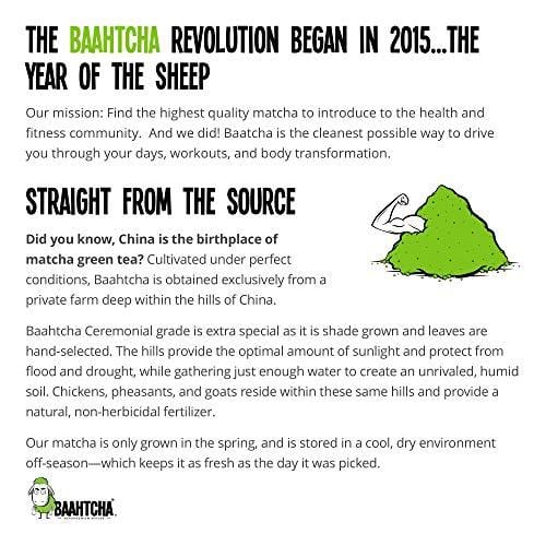 Baahtcha - USDA Organic Matcha Green Tea Powder - Premium Ceremonial Grade - Value Size Lowest Price - Natural Caffeine Energy Drink Mix, Antioxidant, Weight Loss, Fat Burner - 70g