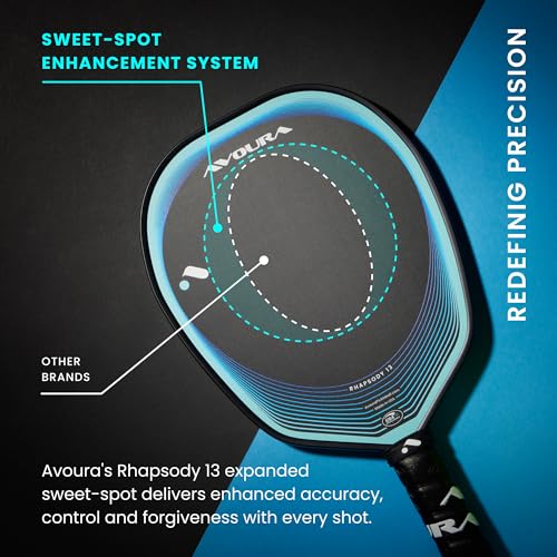 Avoura Rhapsody 13 Pickleball Paddle, Toray t700 Carbon Fiber, Designed by Pros, Sweet Spot Enhancement System, Wide-Body. Made in The USA
