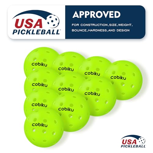 COBIKU Premium Outdoor Pickleballs Balls 3Pack - USAPA Approved Tournament and Competition Pickleball with Perfectly Balanced and Visibility, 40 Hole Pickleball Ideal for All Skill Levels - Neon Green