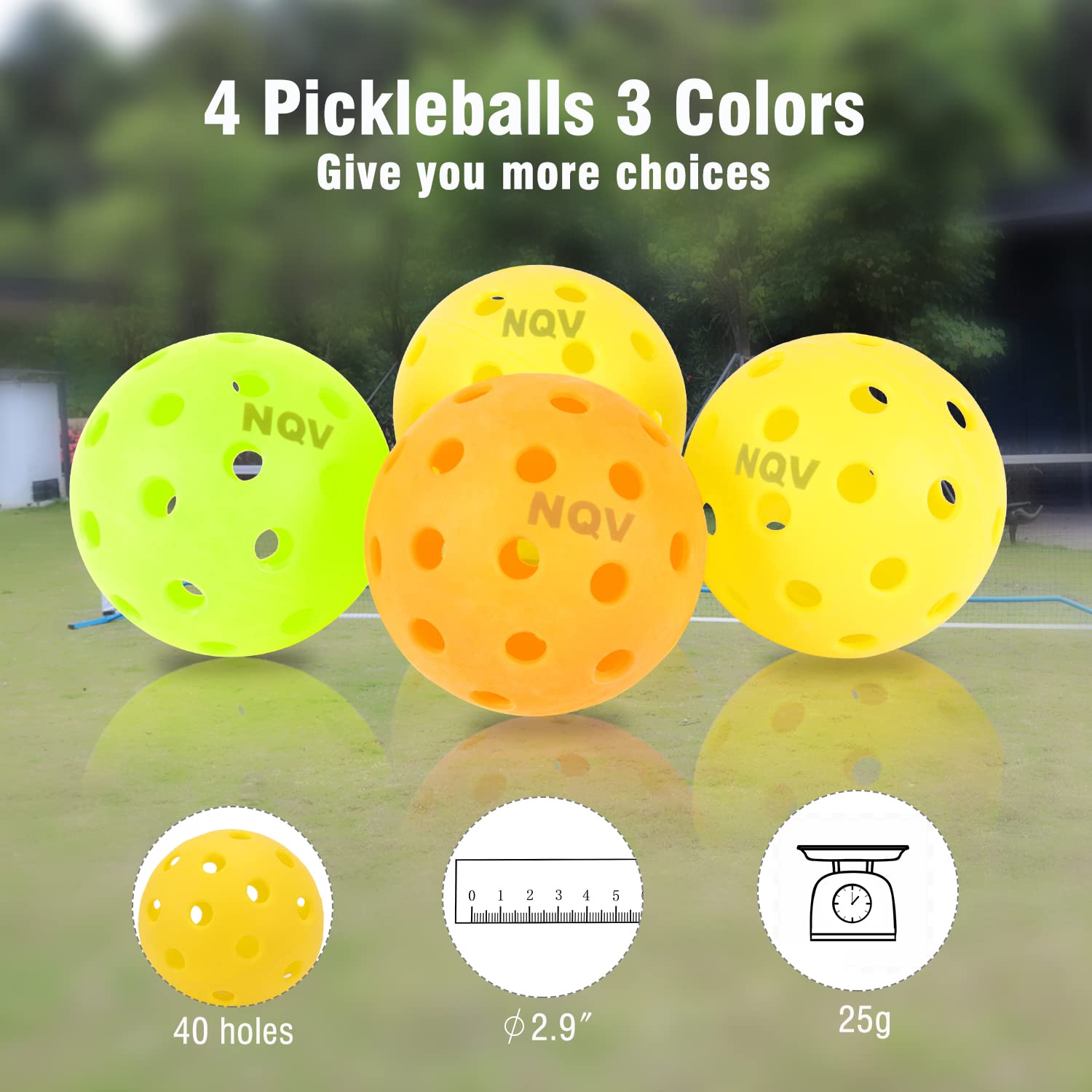 NQV Pickleball Set with Net, Pickleball Set, 4 Wood Pickleball Paddles+22FT Full Court Pickleball Net+4 Pickleball Balls+1 Duffle Bag+2 Chalks for Markers, Outdoor Indoor Driveway Home Beginner