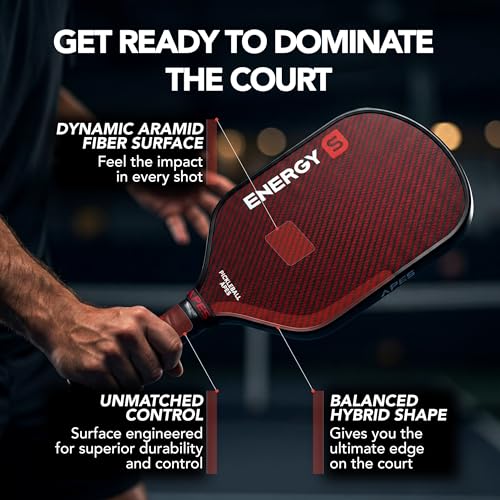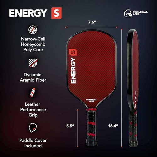 Pickleball Apes Energy Series S Professional Pickleball Paddle Racket USAPA Approved for Men and Women, Carbon Fiber, Honeycomb Core, 6.5mm Thickness, Leather Grip, Cover Included, Hybrid Shape