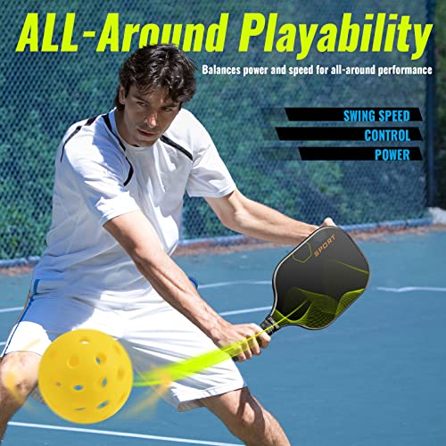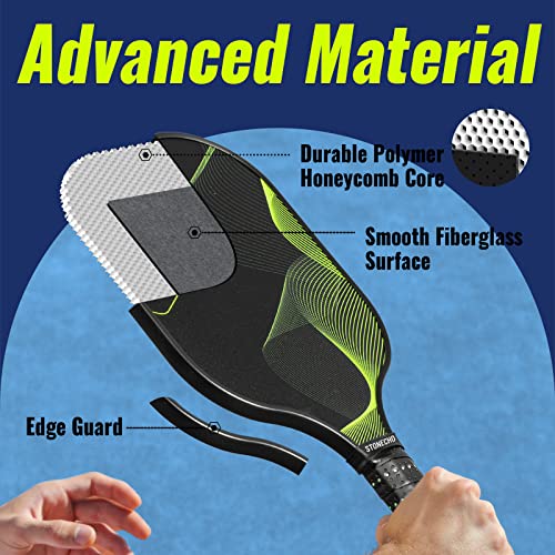 Pickleball Paddles, Pickleball Set, Best Pickleball Rackets Fiberglass Face, Polypropylene Honeycomb Core, 4.25 Grip, Lightweight Pickleball Paddles Set of 2 & 4 Indoor Outdoor Pickleballs & Carry Bag