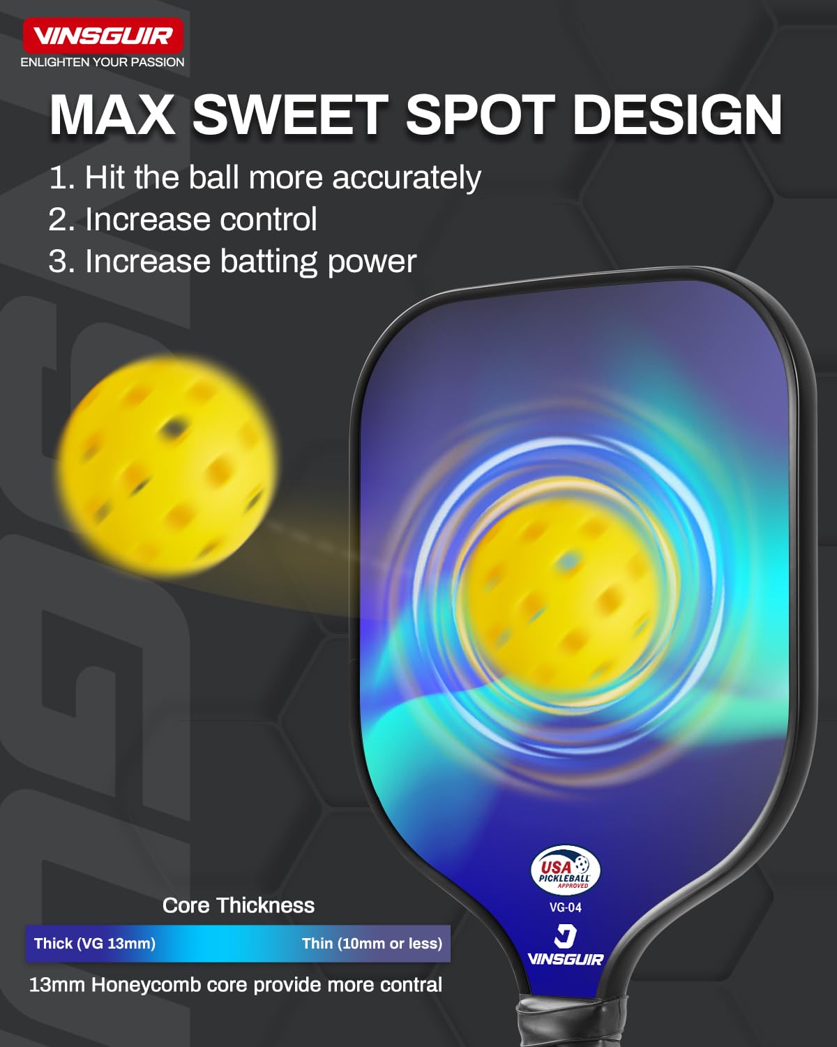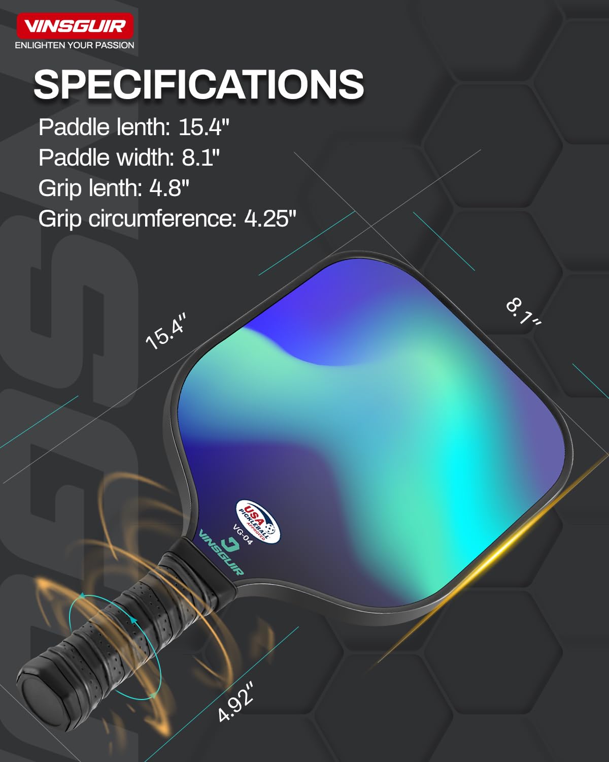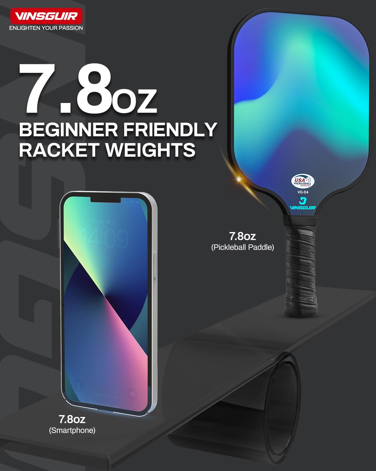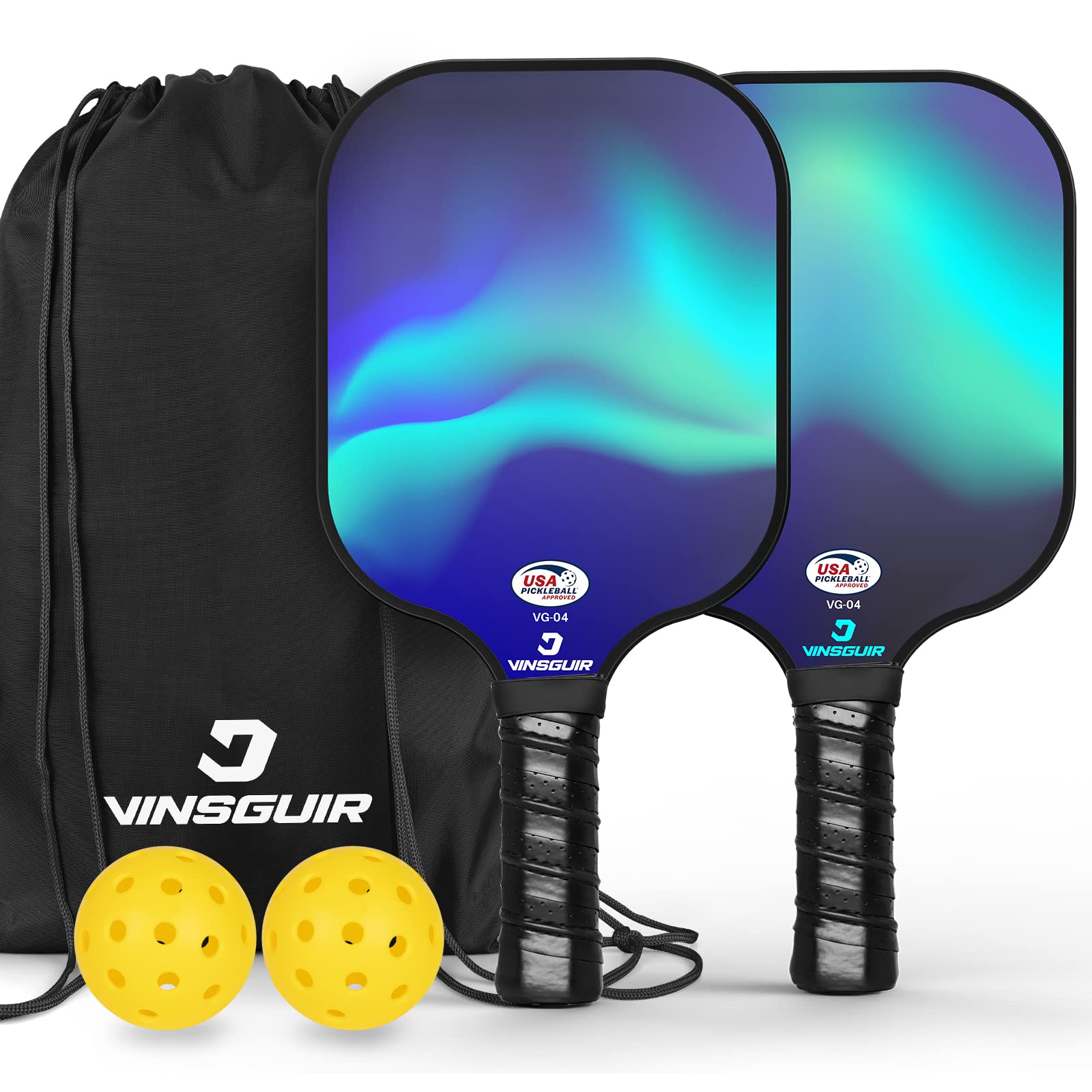 VINSGUIR Pickleball Paddles, USAPA Approved Fiberglass Pickleball Paddles Set of 2, Lightweight Pickleball Rackets with Pickleball Carrying Bag, Pickleball Gifts for Beginners & Pros (2 Rackets)