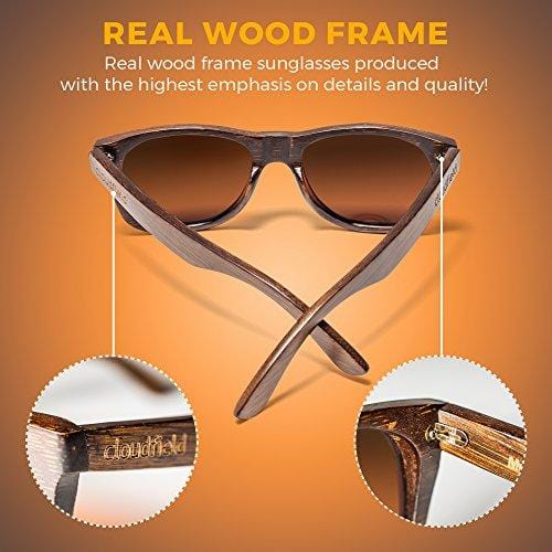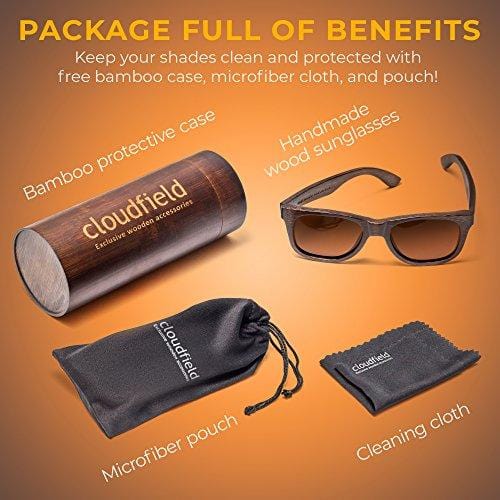 - ✅ FREE BAMBOO PROTECTIVE CASE, MICROFIBER POUCH, and CLOTH - Each pair of Cloudfield sunglasses comes with a high-quality bamboo sunglasses case and pouch to protect your wood grain sunglasses and a microfiber cloth to keep them clean!