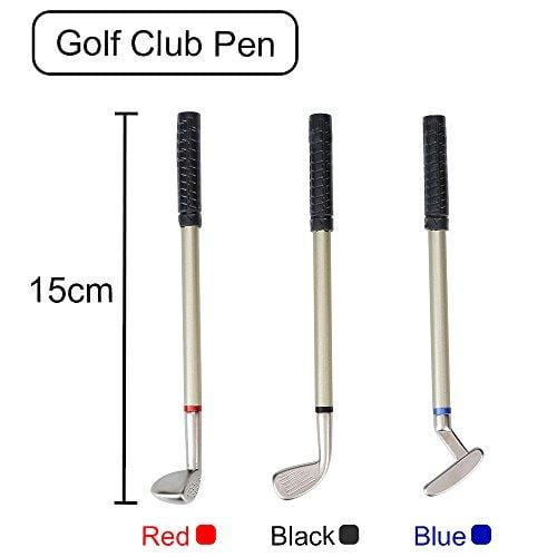 - ✔ THREE DIFFERENT CLUB INK PEN: With free quality ALUMINIUM ALLOY ink pen and PLASTIC GREEN LAWN.The 6" L driver has red ink, the 5.75" L putter has blue ink and the 5.75" L wedge has black ink.