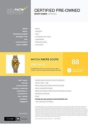 Details: ROLEX DATEJUST 16013 MENS AUTOMATIC WATCH CHAMPAGNE DIAL 18K TWO TONE 36MM. BUY WITH CONFIDENCE KNOWING EACH TIMEPIECE GOES THROUGH THE SAME RIGOROUS 31-POINT INSPECTION. REST ASSURED ONLY AUTHENTIC PARTS STRAIGHT FROM THE MANUFACTURER ARE USED. THE CERTIFIED PRE-OWNED PROGRAM ON AMAZON ENSURES PEACE OF MIND AND TRANSPARENCY VIA STANDARDIZED REPORTS AND A 1 YEAR WARRANTY PROVIDED BY WATCHFACTS.