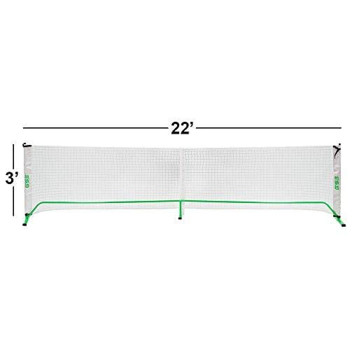 - 3' x 22' official size pickleball net with reinforced tape and tension straps, for reinforcing and preventing snapping. Set of heavy-duty black powder coated steel support poles with flat steel legs to improve stability. The center position has a raised pole to ensure that the entire net remains parallel. Very easy to assemble and disassemble in minutes. Made with durable construction.